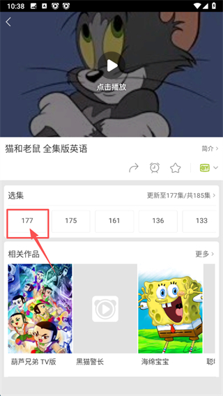4、在动漫详情页,点击第177集选项,开始观看该集内容。