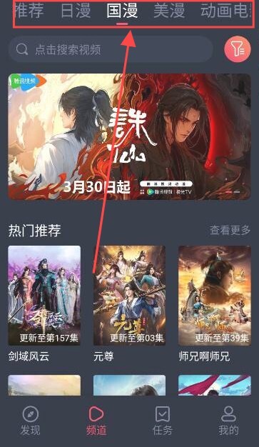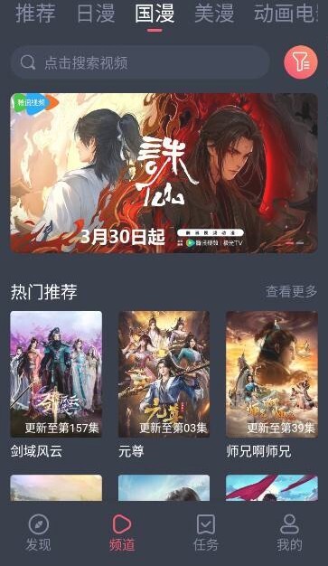 2、首页包含了日漫,国漫,美漫等等一些资源。