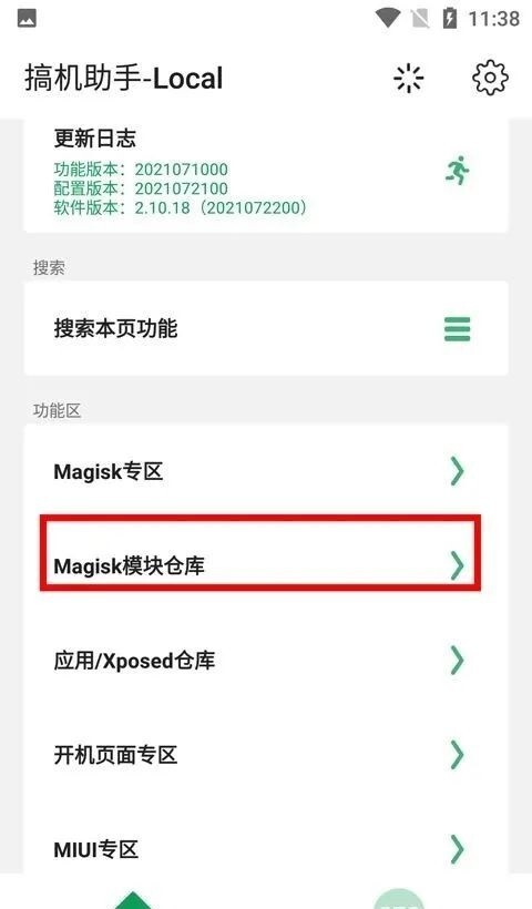 1、在本站安装搞机助手Local之后,在功能区找到magisk模板仓库,点击进入;