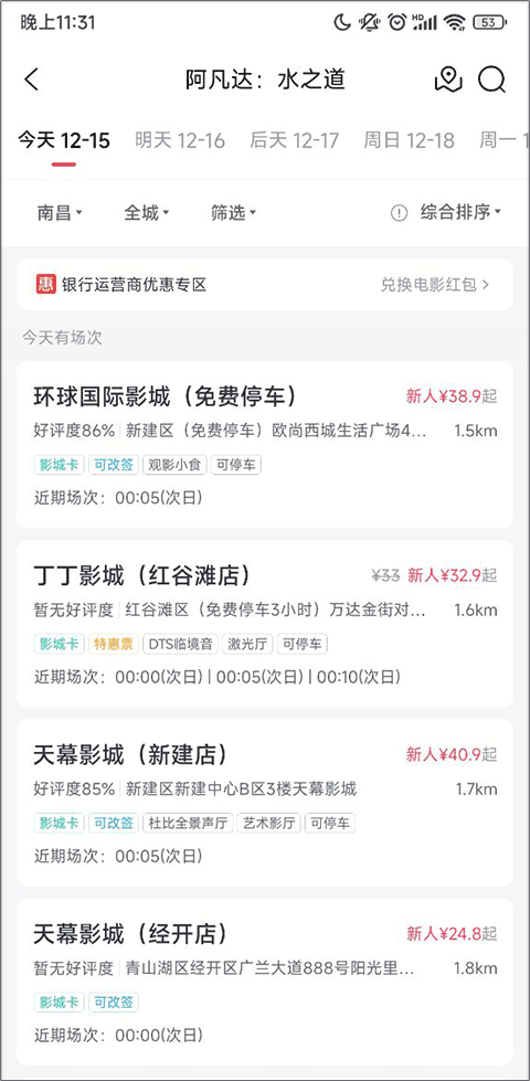 已经覆盖 300+ 城市,3000+ 影院,让你享受快速低价的购票体验