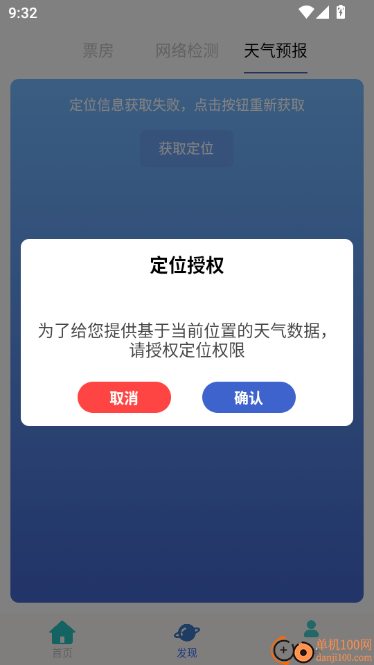 3. 接着选择界面底部菜单栏中的“天气预报”功能按钮,待弹出定位权限提示弹窗后,点击“确定”按钮以进入下一步操作。