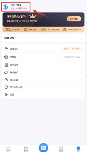 1、启动纠错大师后,点击底部菜单栏"我的"图标,进入账号管理页面。