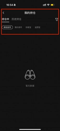 6、在“我的持仓”页面,您能够查看当前的持仓情况以及过往的持仓记录;点击筛选按钮,还可以挑选您希望查看的具体币种。