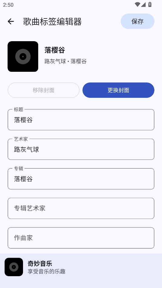 奇妙音乐作为一款本地音乐播放器,采用简约流畅的界面设计,操作便捷,支持一键导入手机内的音乐文件,兼容flac、wav等无损音频格式,播放音质清晰高清。用户可对歌曲的封面、专辑、作者等信息进行修改或添加,并借助这些信息实现歌曲的统一管理以及自定义歌单的创建。此外,它还具备定时关闭、歌词同步等实用功能,堪称本地音乐播放的优质之选。