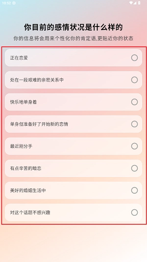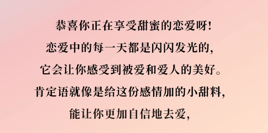 1、肯定语推送:依据心理学原理每日定时推送肯定语,支持自定义时间,早间推送活力向内容、晚间推送舒缓向内容。