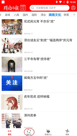 1、打开闽南云报后,点击“闽南号”板块,这里汇聚了闽南各地的相关资讯。