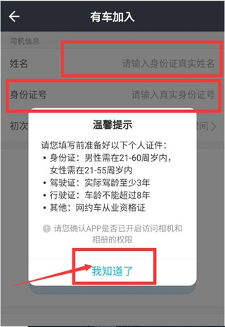 4、点击“我知道了”,然后填写你的个人信息。
