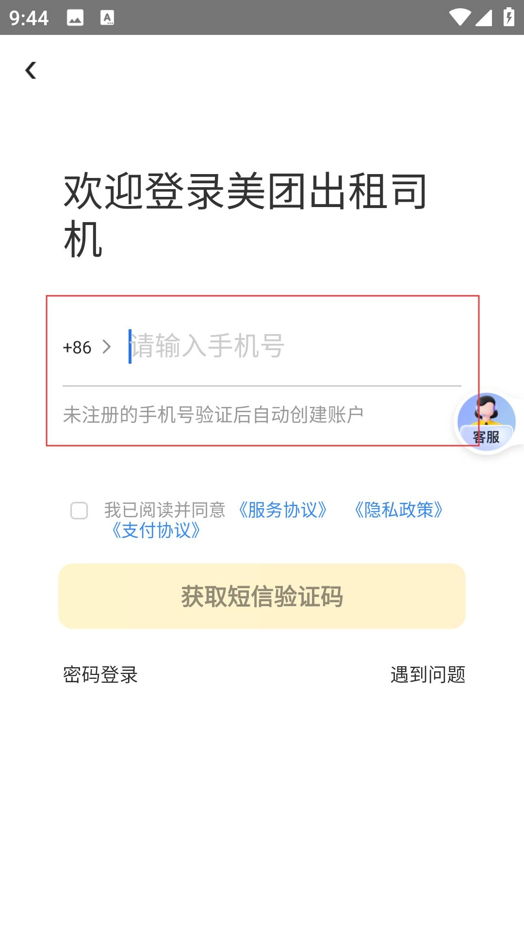 1、阅读法律条款,同意后进入登录,输手机号,获验证码,点登录,用司机端,接单服务。