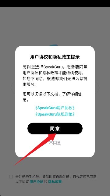 1、安装好本站的咕噜口语,然后打开软件,同意用户协议与隐私政策;