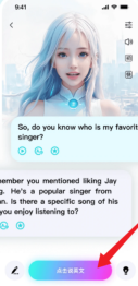用户能够在软件的【对话】界面和AI开展虚拟对话,只需点击【点击说英文】按钮并发送语音就可以了。