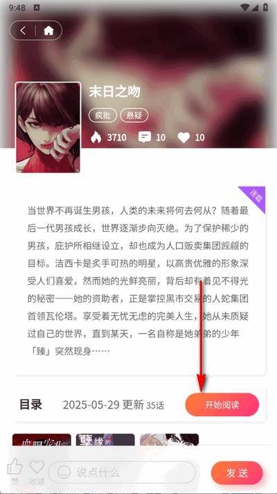 3、进入漫画详情页后,用户点击底部的章节即可开始阅读,也能将漫画下载到本地。
