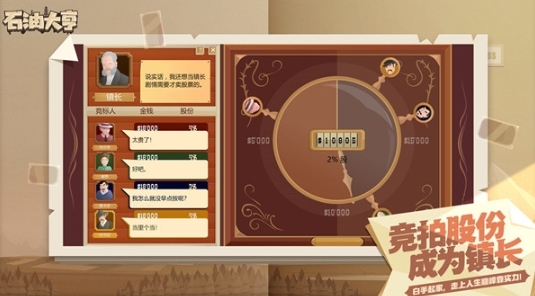 游戏开局时,每个人都能分到一块地,大家要靠自己的能力去开采石油赚取财富。谁赚的钱越多,谁就能掌握更大的话语权,从而抢占更多有油的地块,在起步阶段就占据优势!不过要注意,参与股份竞拍可不仅仅是有钱就能成功的——你永远猜不到对手会在哪个瞬间出手拍下股份,这种充满不确定性的玩法才最让人热血沸腾!最终,究竟谁能坚持到最后,成为名副其实的石油大亨呢?