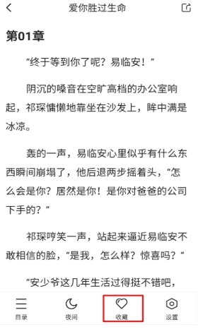 4、也能在进入阅读界面后,点击中间区域调出菜单,再点击“收藏”按钮。