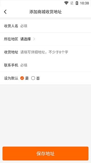 3、依次填写收货人姓名、地址、手机号码,点击“保存地址”即可。