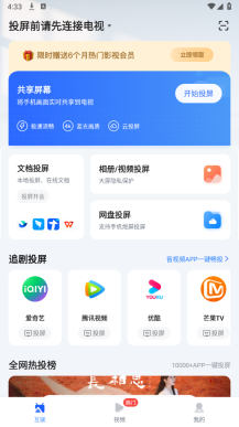 3.春晚、热剧、网盘资源,快速投屏电视,共赏高清大屏盛宴。
