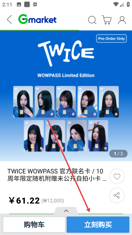 3、在热卖商品分类页面挑选目标商品(例如TWICE-WOWPASS联名卡),然后进入该商品的详情页面。