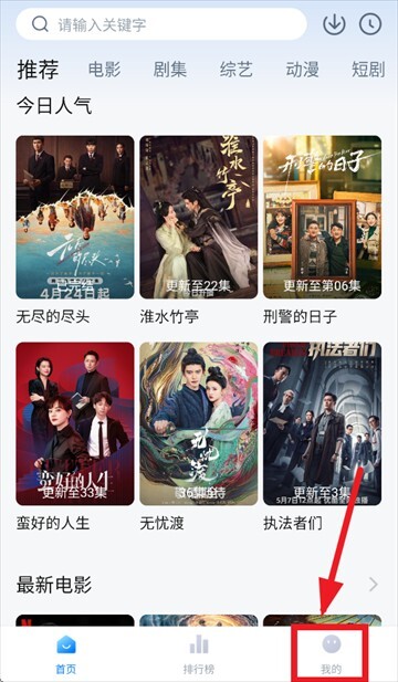 在本站安装并打开松子影视,进入首页后点击我的