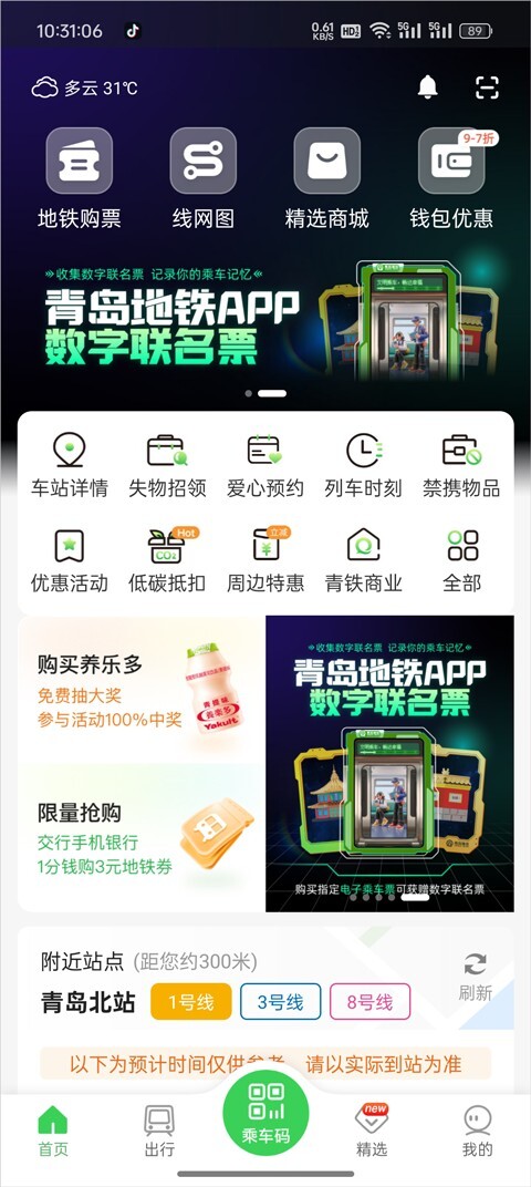 青岛地铁APP是一款为用户提供便捷出行服务的应用,聚焦智慧出行与便民功能,可满足本地用户多样化的消费需求。它支持地铁进出站扫码、多种路线规划查询及乘车信息查看;还提供便捷的水电缴费服务,整合了吃喝玩乐等生活场景的优质资源,助力用户享受高效便捷的生活体验。此外,该软件兼容手机NFC功能,支持刷手机快速乘车,用户还能享受专属的乘车优惠福利。