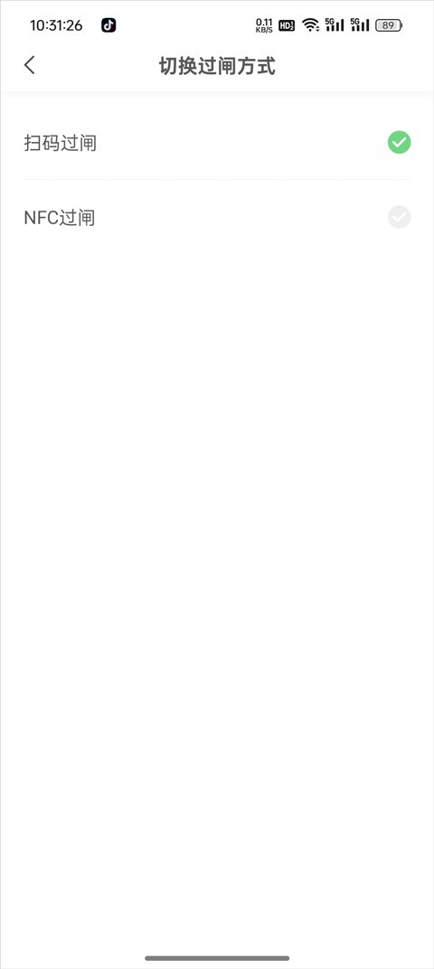 4、最后进入切换过闸方式的页面,将NFC过闸选项右侧的“勾号”按钮开启就可以了。
