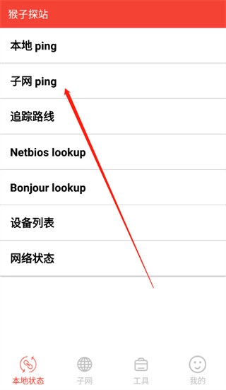1、启动猴子探站软件,进入本地状态后,用户能够查看本地ping信息;