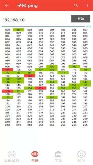 3、点击开始后进入子网ping界面,便可查询到IP地址;