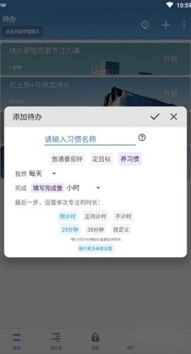 4、结合习惯养成功能,设定每日、每周、每月的专注时长目标。