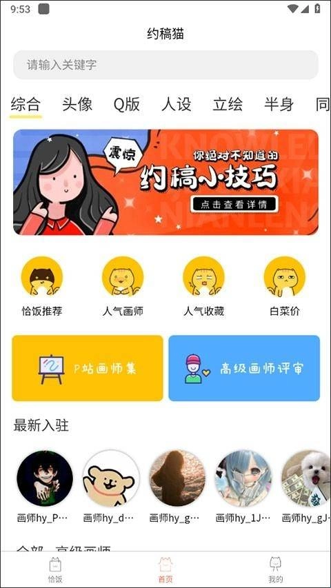 1、这是一个专注于绘画约稿的平台,平台上提供头像、Q版、人设、立绘等多种类型的约稿服务。