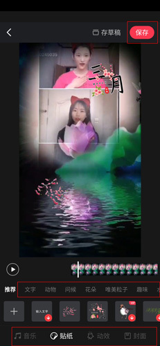 5、用户可以将视频进行优化,加入一些文字、动物、花朵、音乐、贴纸、封面等功能,让视频更加的好看生动;