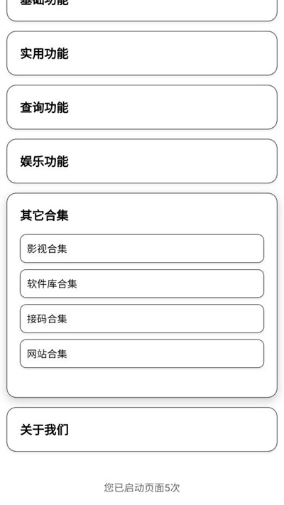 1.软件内的工具被划分为基础功能、实用功能、查询功能、娱乐功能以及其它合集这几个板块。
