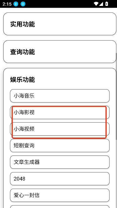 2、选择小海影视或小海视频:在娱乐功能页面里,找到并选中“小海影视”或者“小海视频”。