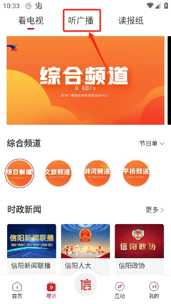 2、接着在页面点击顶部的栏目听广播