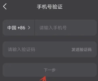 4、输入手机号及验证码,点击下一步