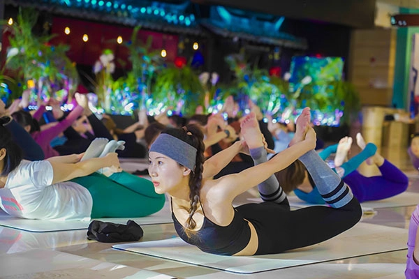 当天,一百二十多位瑜伽爱好者身着瑜伽服,铺好瑜伽垫,在全美瑜伽联盟RYT500导师BEX与全美瑜伽联盟认证导师、FLOW瑜伽创始人张兵两位专业导师的带领下,同步呼吸、舒展身体,一同释放压力、唤醒内在觉知与自我、激发身体潜能,在时尚炫酷的氛围中感受生命能量的流动,全身心沉浸于这场舒展身心的潮流瑜伽派对。
