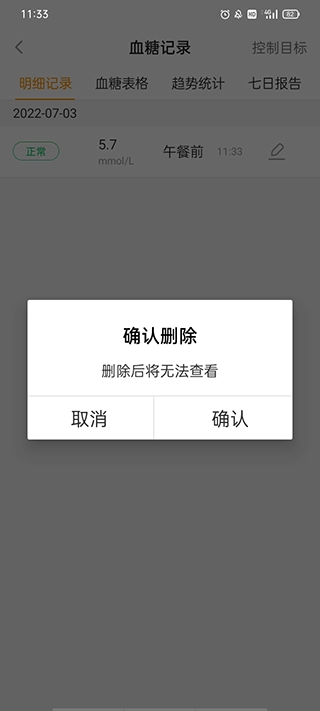 4、确认过后就不会显示血糖记录了。