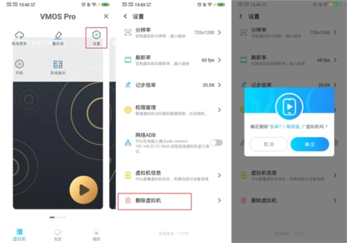 在虚拟机界面点击右上角三条横杠,选择设置,最后就有一个删除虚拟机。