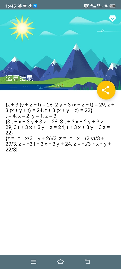 3、当然,要是你有方程式的复制文本,也可以直接在首页粘贴输入,接着点击左侧的计算按钮就能得到答案,下图展示的就是小编粘贴的方程组。