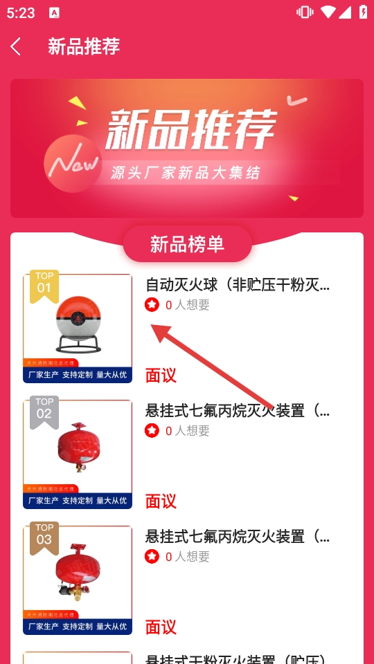 2、在新品推荐页,选【自动灭火球】,进入商品详情页。