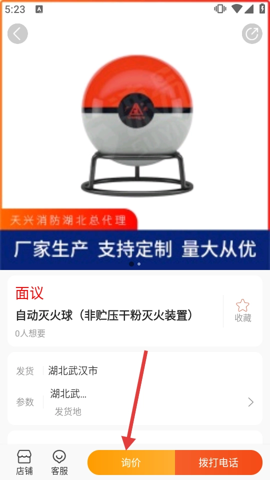 3、在商品详情页,点【询价】,进入在线咨询页。