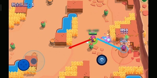 4、使用技巧:潘妮的钱袋击中第一个敌人后会破裂,飞散出来的会继续攻击后方的目标,并且范围变大伤害变高,这常常会被新人忽视,所以在荒野决斗中可以利用能量箱打出二段伤害,守株待兔,抢占优势。