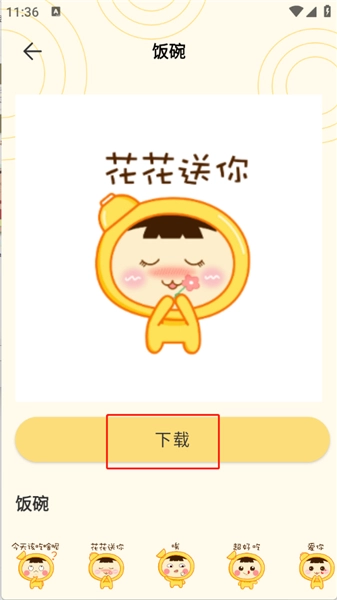 点击喜欢的表情包,点击“”即可使用。