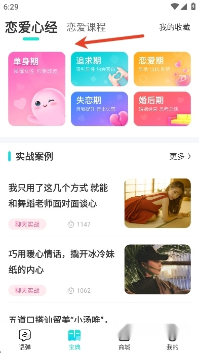 用户们还可以在宝典页面学习各种恋爱课程