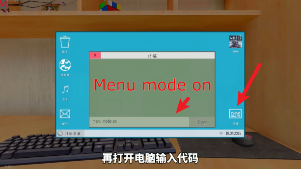 1、先依照之前说明的电脑密码步骤启动电脑,接着点击右下角的终端,在输入框里输入“menu mode on”就能激活黑客菜单。温馨提示:需在简单难度及以上难度下,完成小门结局、大门结局、屋顶结局与电线结局这四个结局后,才能够开启该功能。