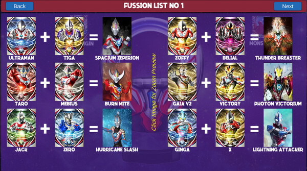 4、点击右边的奥特融合卡牌区,挑一张你喜欢的奥特曼卡牌,开启融合之旅吧!