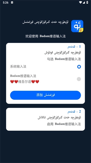 Badam维语输入法免费版是一款实用的维吾尔语输入法工具,多种语言可供用户灵活切换,配备丰富词库并支持自动补全功能,助力用户快速高效地进行文字输入与交流。该输入法支持全键盘维文输入模式,能让用户便捷地与他人开展沟通互动。