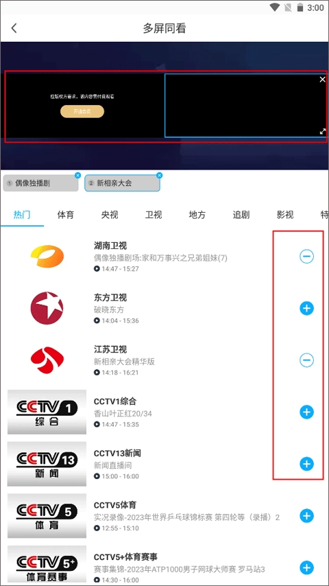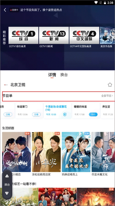 3、添加完成后进入播放界面,你可以点击屏幕来切换节目。