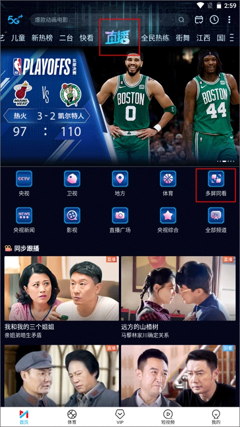 1、依旧是在【首页】的直播频道里,点击下方的“多屏同看”功能。
