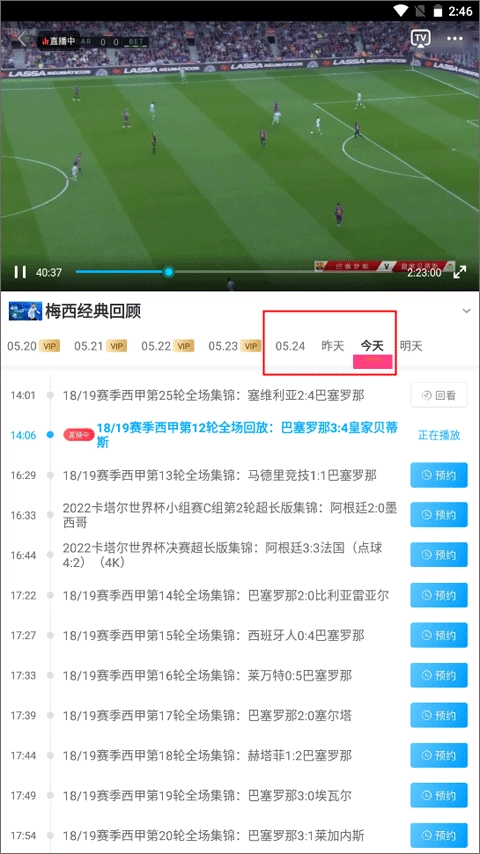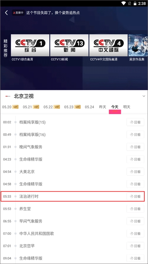 2、你可以看到左边标有vip字样的日期需要付费才能观看,后面的则是免费的,差不多能观看三天的回看内容。