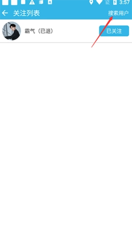 3、进入关注页面后,点击右上角的“搜索用户”选项。