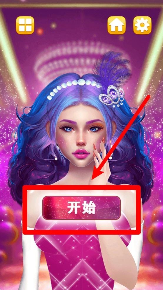 1.点击“开始”按钮即可进入美容流程画面,准备为角色进行美颜改造,开启你的化妆师挑战之路。