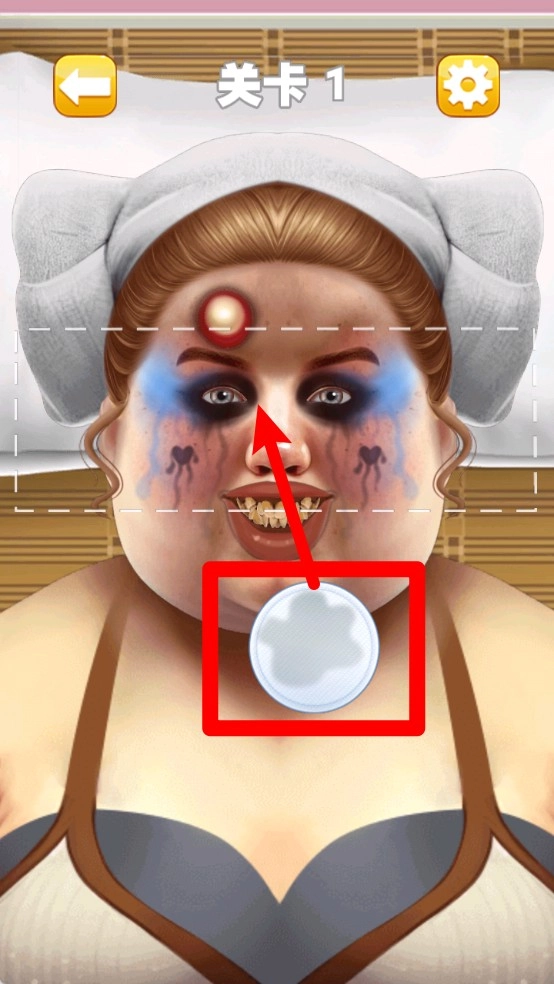 2.拖曳放大镜工具到指定区域进行美容处理,依照提示一步步清理角色脸部污垢并修复瑕疵问题。